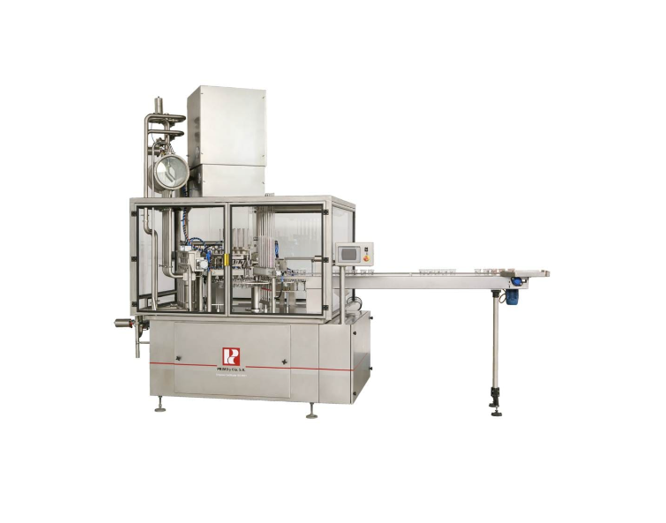 The AT series rotary machines are automatic intermittent motion equipment using a rotary disc with containers accommodation. They are constructed with sanitary design for filling, sealing and capping of plastic cups / tubs, with dosing of various products such as liquids, semi-liquids, pastes, viscous substances, powders, granules, among others. Their construction is customized for each customer, according to the containers to be used. As optional features, the machines can be configured with CIP and SIP systems, containers and lids disinfection / sterilization systems, additional setups for different container sizes, safety cabins, HEPA laminar flow injection, secondary filling units, rollstock lidding, plastic overcaps placing system, plastic overcups positioning system (with corn flakes or topping), automatic lubrication systems, coders / printers, and more.